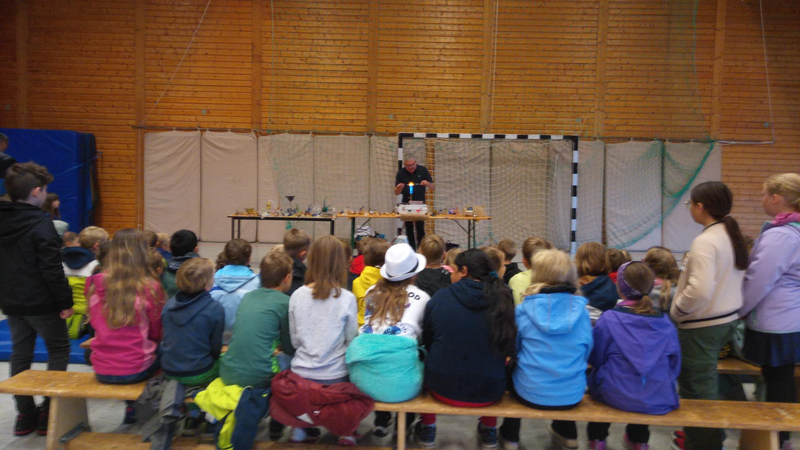 Am Mittwoch, den 25.09.2024 war der Glasbläser zu Besuch und hat allen Schulkindern in der Berglandhalle über sein Handwerk berichtet und gezeigt, wie er Glasfiguren herstellt.