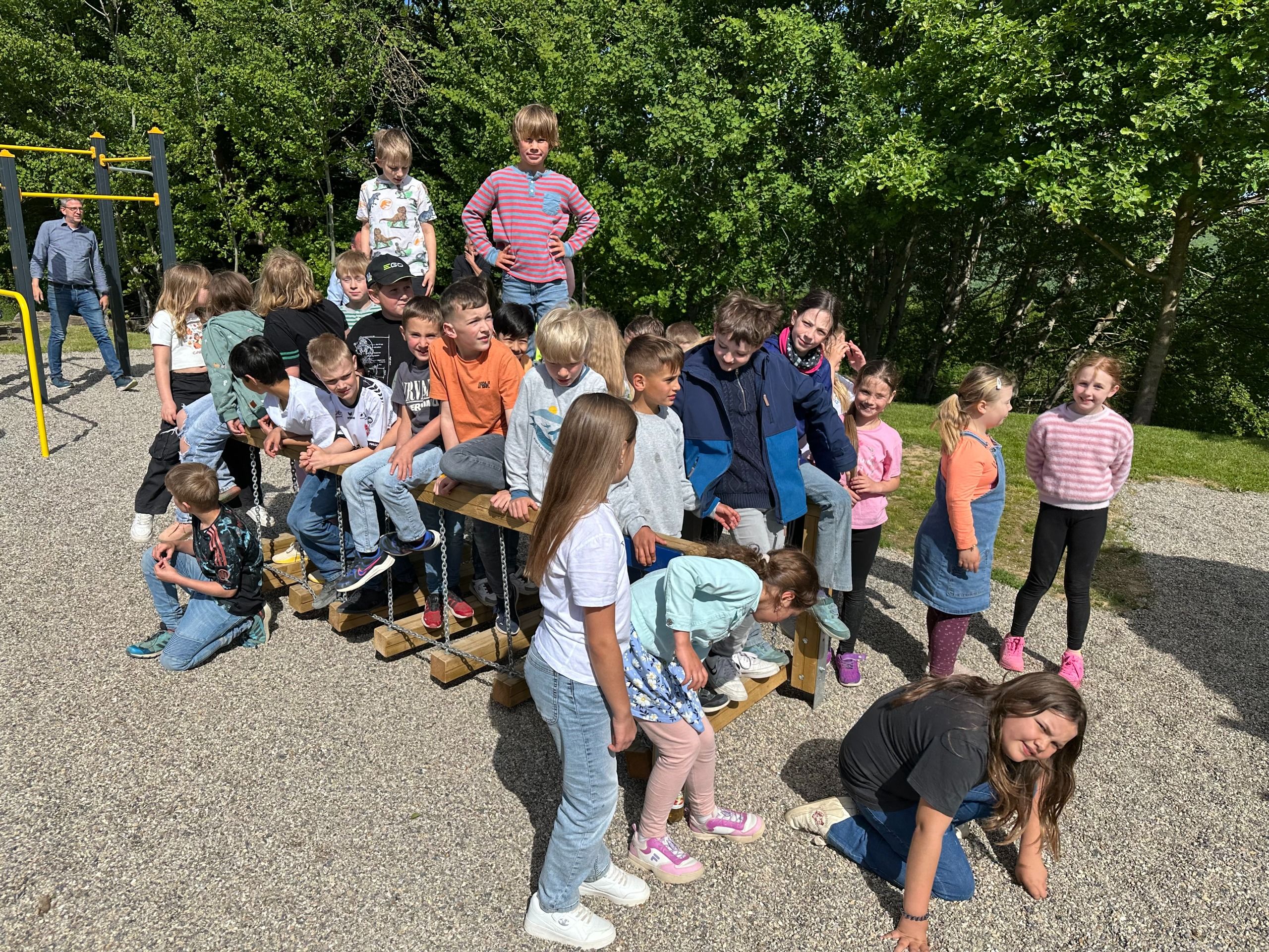 Heute wurden unsere 3. Klassen vom Bürgermeister persönlich zur Spielplatzeinweihung auf den Hollunder eingeladen. Vor ca. 1 Jahr schrieben beide Klassen einen Brief an unseren Bürgermeister Mario Gerhold, in dem sie schilderten, wie wichtig ihnen der Spielplatz sei und dass sie sehr traurig seien, dass er abgerissen werden soll. Daraufhin hat sich die Gemeinde mit dem Kindergarten und der Schule ausgetauscht und signalisiert, dass sie den Spielplatz gerne für uns erhalten wollen. Daraufhin stimmte auch die Gemeindevertretung zu und so durften alle 120 Schulkinder abstimmen, welche Spielgeräte sie gerne hätten.